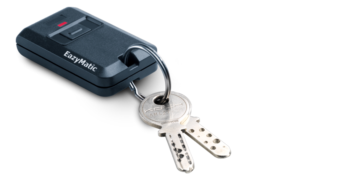Der Mini-Handsender kann dank seiner geringen Grösse am Schlüsselbund befestigt werden und passt in die kleinste Tasche.
