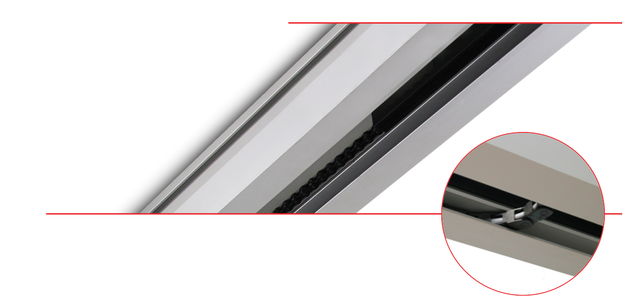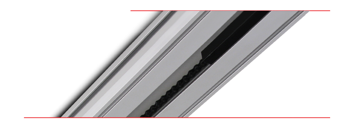 - Im Kunststoffprofil geführte Stahlrollenkette