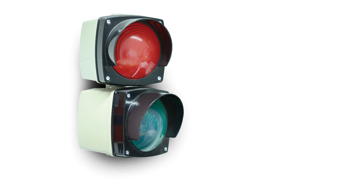 Ampeln mit LED-Leuchtmitteln und 180° schwenkbar. Erhältlich in den Farben rot/grün oder orange blinkend.