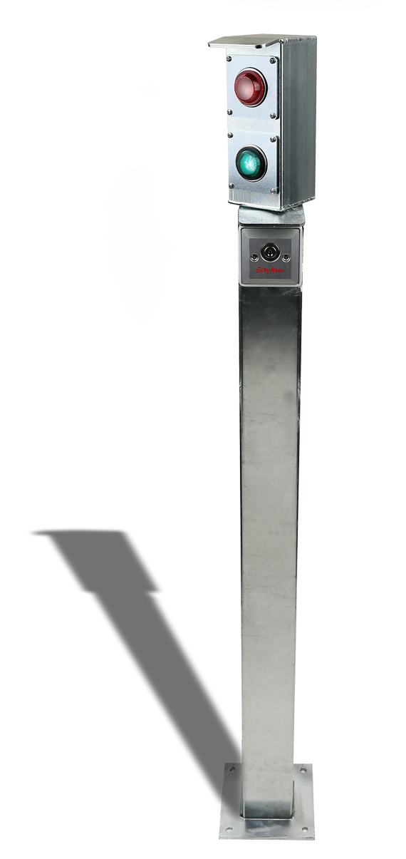 Feuerverzinkte Säulen für Schlüsselschalter, zum Einbetonieren oder Verschrauben. Optionaler Ampelaufsatz, 360° schwenkbar. Erhältlich in den Farben rot/grün oder orange blinkend.